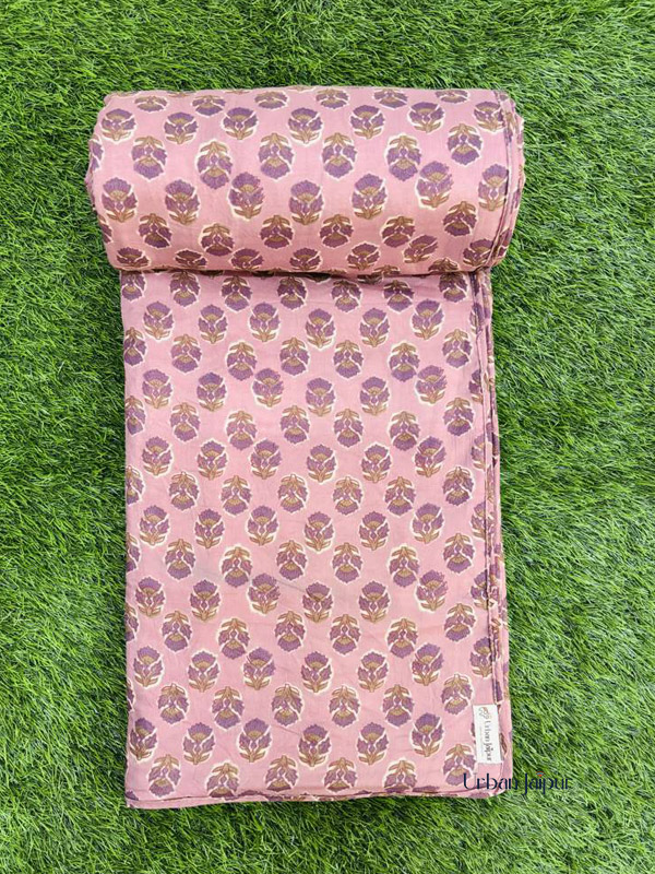 Bring home the charm of traditional Jaipuri prints with this soft mulmul cotton dohar. The front side features a beautiful purple base with dark purple boota motifs, while the reverse side has an abstract print in purple on a soothing cream base.