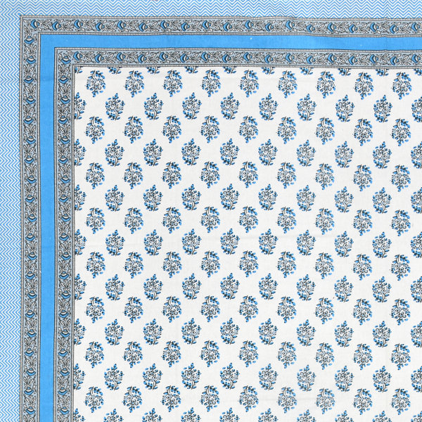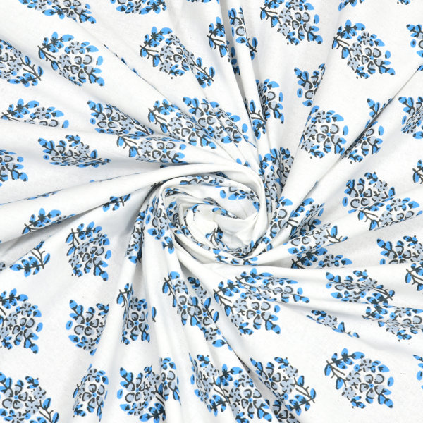 Featuring a beautiful floral print on a soft white base with blue motifs all over, this pure cotton bedsheet adds a refreshing pop of color to your bedroom.