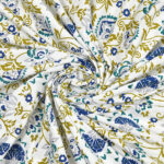 Featuring a soothing white base with delicate floral prints and a soft blue border, this bedsheet offers a refreshing touch to your room. The gentle, summery color palette creates a light and airy vibe – ideal for warmer days.
