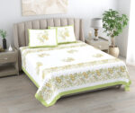 Bring freshness and serenity to your bedroom with this Queen size bedsheet from our Kaya Collection. Designed with a clean white base and soft green artistic prints, it adds a natural, soothing touch to your space while keeping the look minimal and classy. Crafted in Jaipur from 100% pure cotton, this luxury bedsheet is soft, breathable, and durable for year-round comfort.