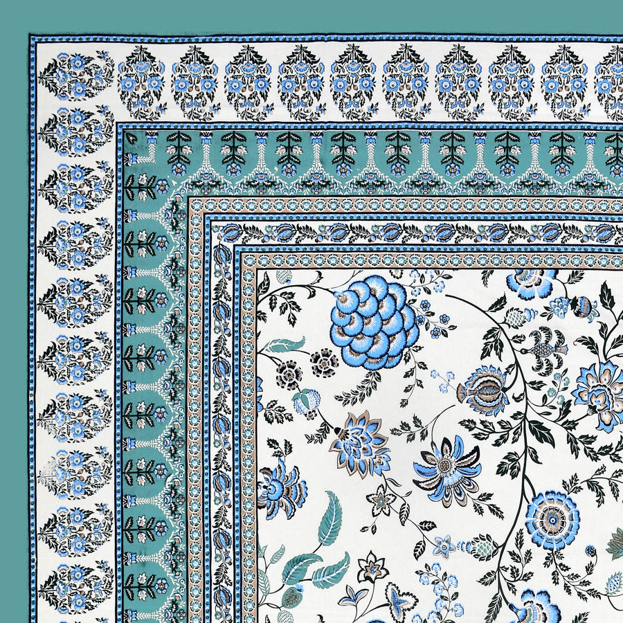 Refresh your space with this calming bedsheet from our Rangriti Collection. Featuring a leafy floral design in soothing sea green and blue tones, it brings a cool, serene vibe while carrying the charm of traditional hand screen printing.